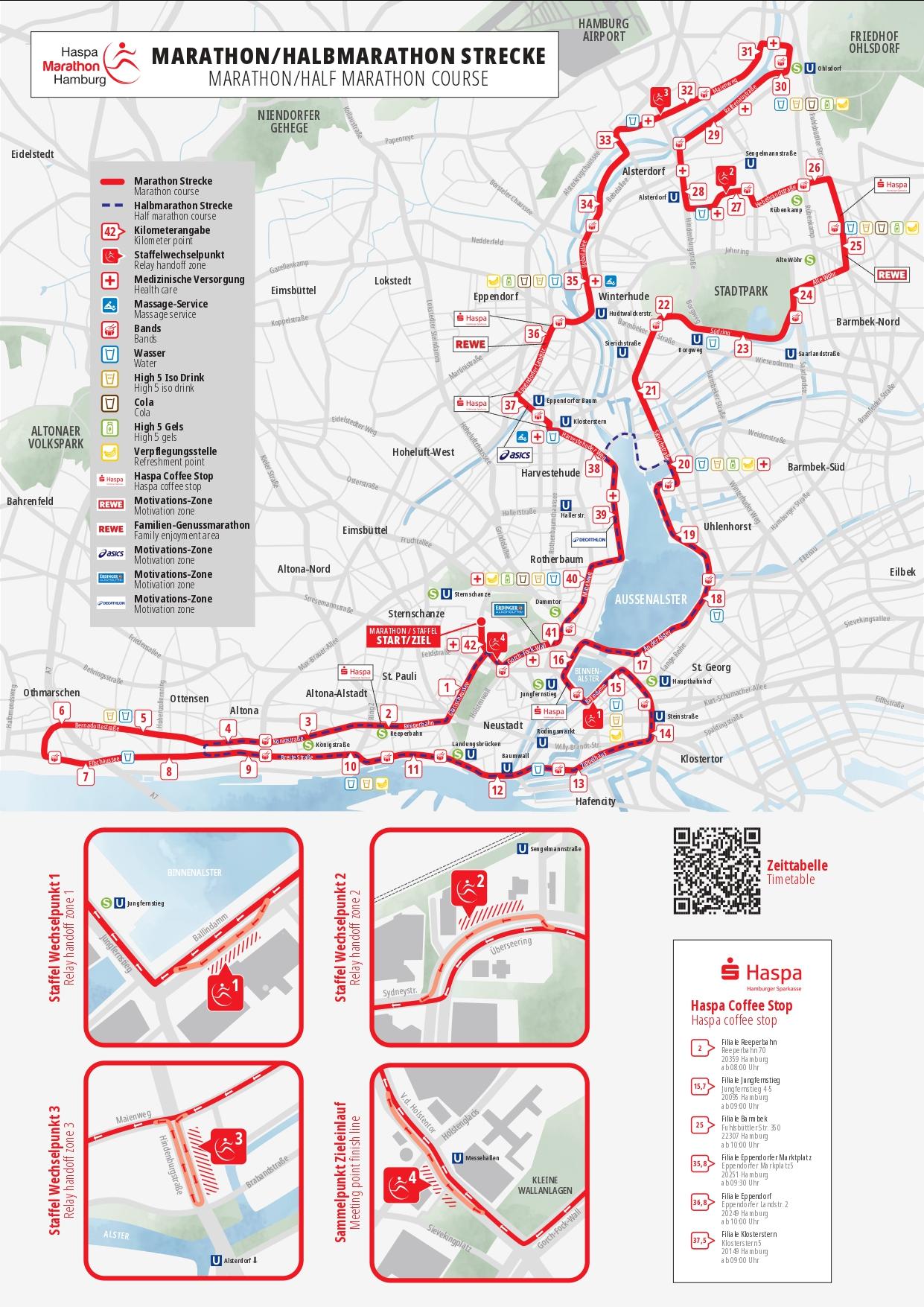 Het vlakke parcours voert je dwars door het hart van de havenstad en langs de prachtige Außenalster. Brede wegen en lange rechte stukken maken dit een ideale wedstrijd voor wie op jacht is naar een persoonlijk record. Tegelijkertijd zorgen de vele toeschouwers en muziekpunten langs de route voor een uitbundige en motiverende sfeer.