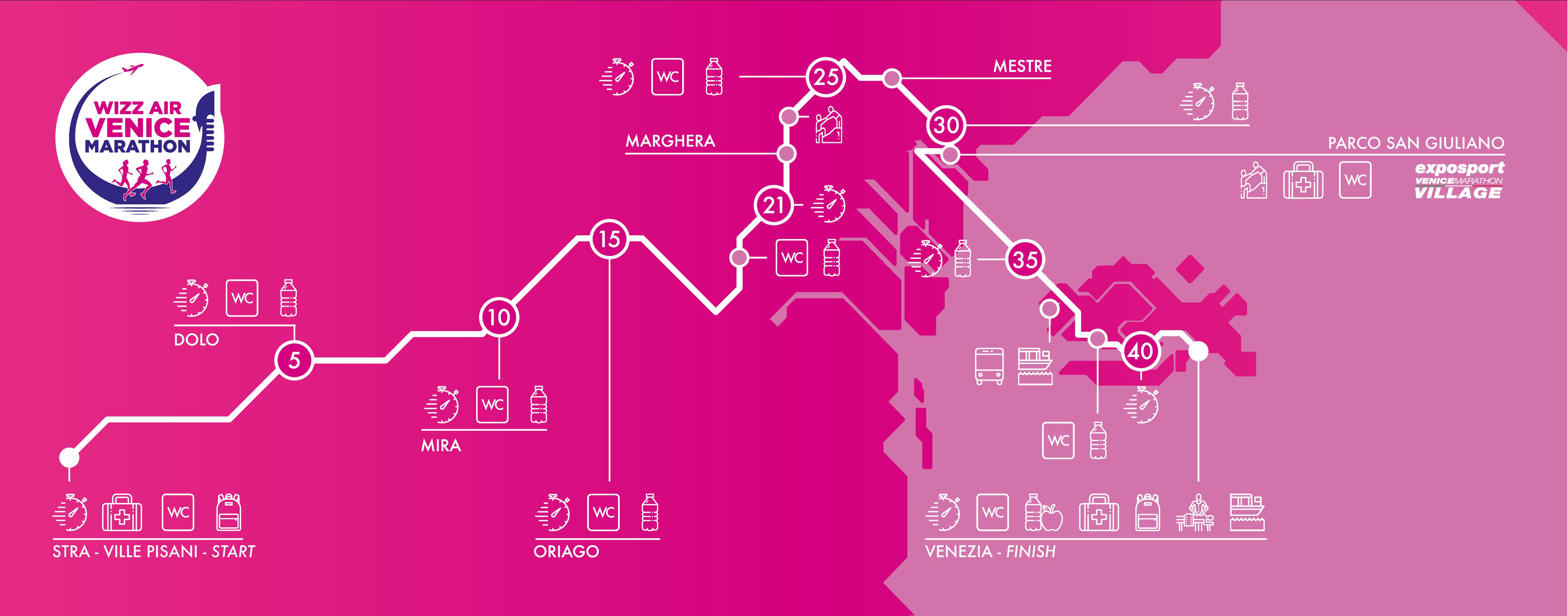 De Venetië marathon is vlak en snel.