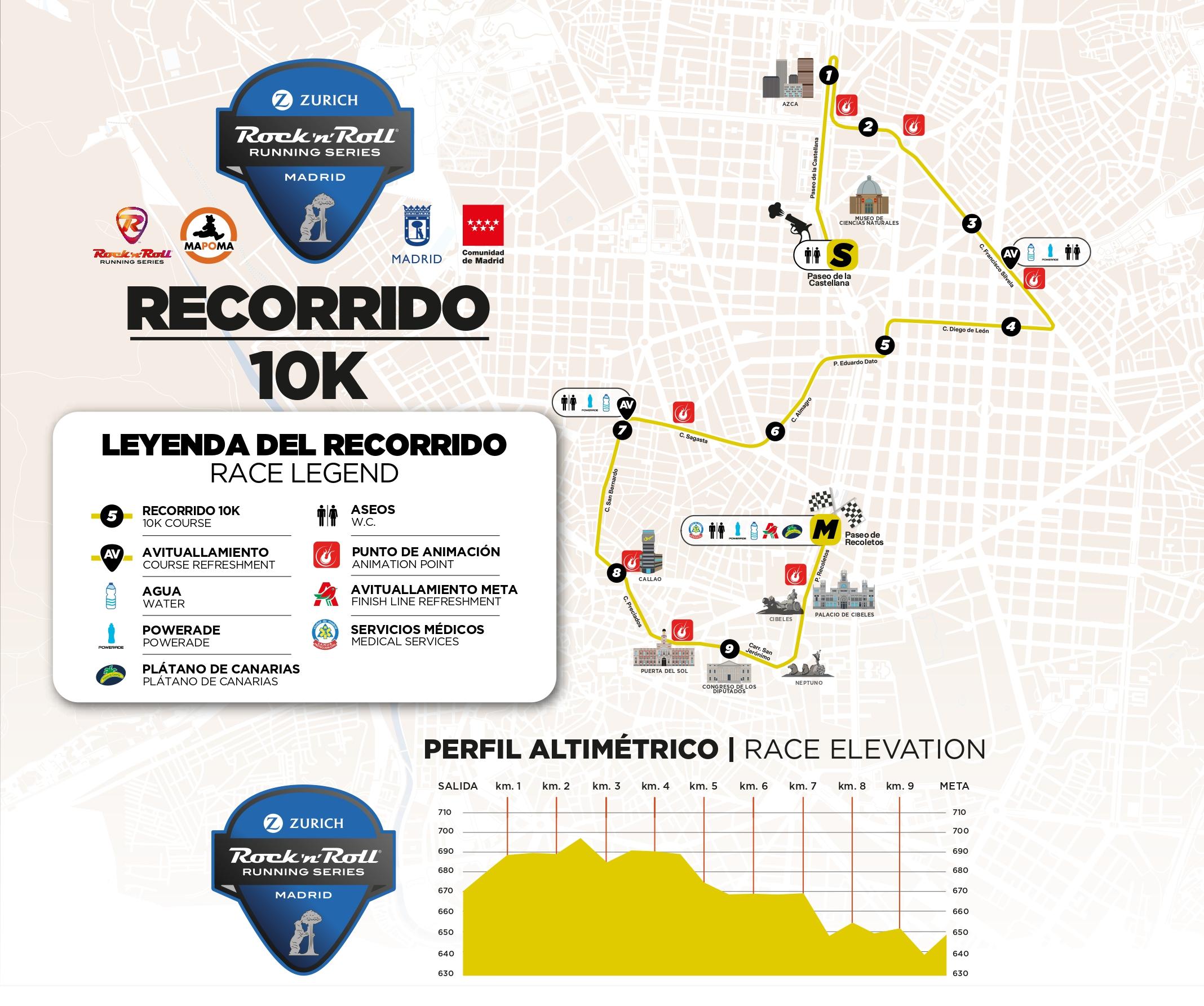De eerste kilometers volgen hetzelfde parcours als de marathon en halve marathon, waarna de route afbuigt voor een snelle en overzichtelijke 10 km door het centrum van de stad. Ondanks de kortere afstand kom je langs indrukwekkende bezienswaardigheden zoals het Museo del Prado en het karakteristieke Estación de Atocha.